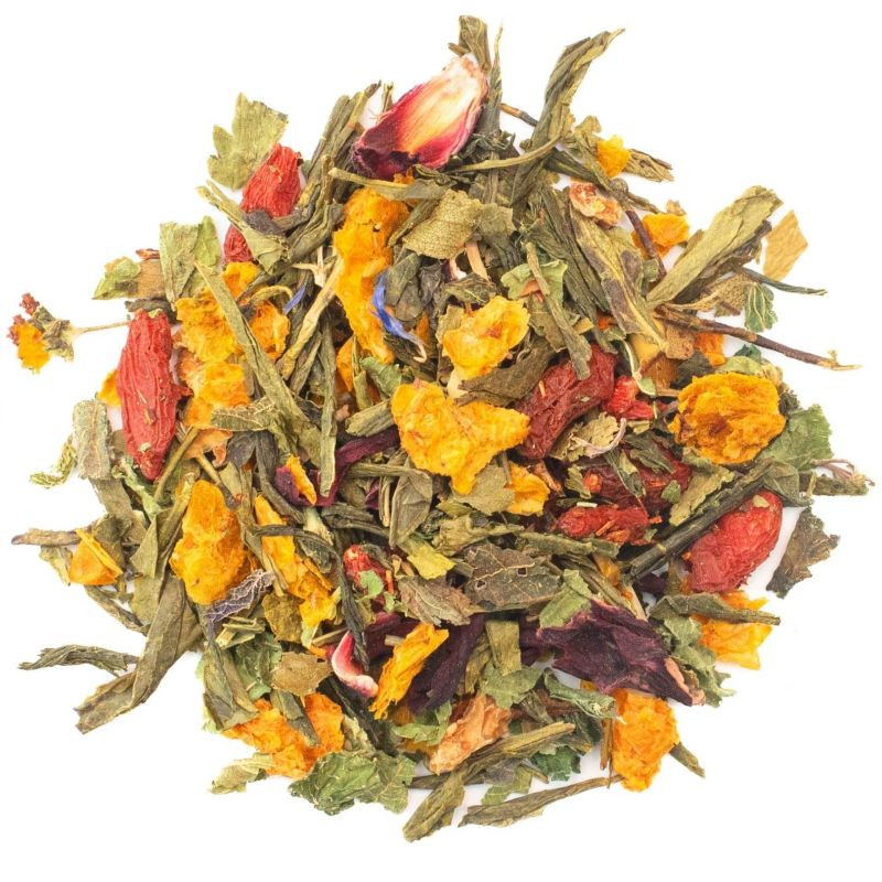 Zöld tea* (44%), rooibos tea* (20%), csalánlevél*, citromhéj* (6%), goji bogyó*, homoktövis bogyóhéj* (5%), rozmaring* (3%), zöld mate* (3%), citrommirtusz*, hibiszkuszvirág*