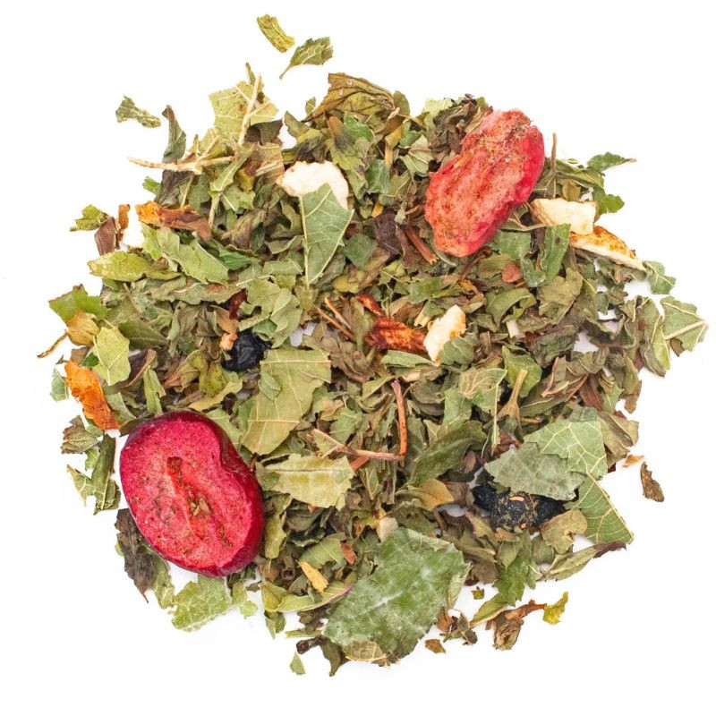 Borsmenta* (33%), citromfű*, szederlevél*, narancshéj*, bodzabogyó*, fodormenta* (6%), természetes áfonyaaroma, tőzegáfonya*, természetes limearoma, természetes fodormentaaroma