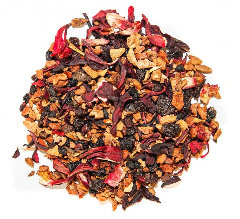 almadarabok* ( étkezési savak: citromsav), szőlő*, hibiszkusz virág*,bodzabogyó*, fahéj* (6%), természetes gyümölcs-fűszer aroma,meggy darabok* (1,5%)